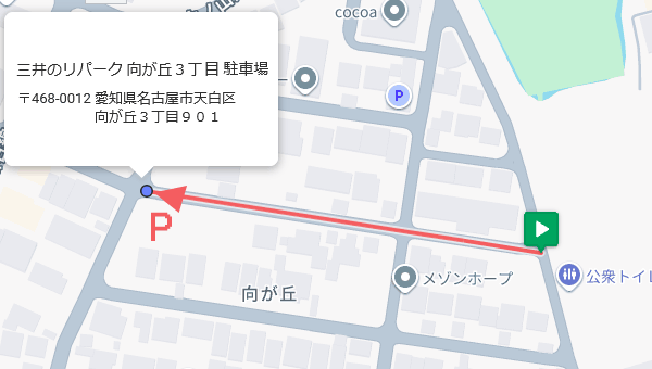 グラウンドより西に200m 三井のリパーク<有料>をご利用願います。
